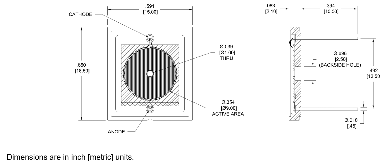受光面積 63mm² (Φ9mmの円形面中心にΦ1mmの穴)
