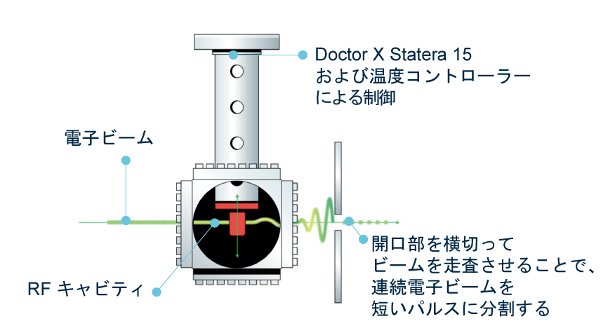 Doctor Xの偏向モジュールは、フェムト秒単位の精度で電子ビームを走査します。